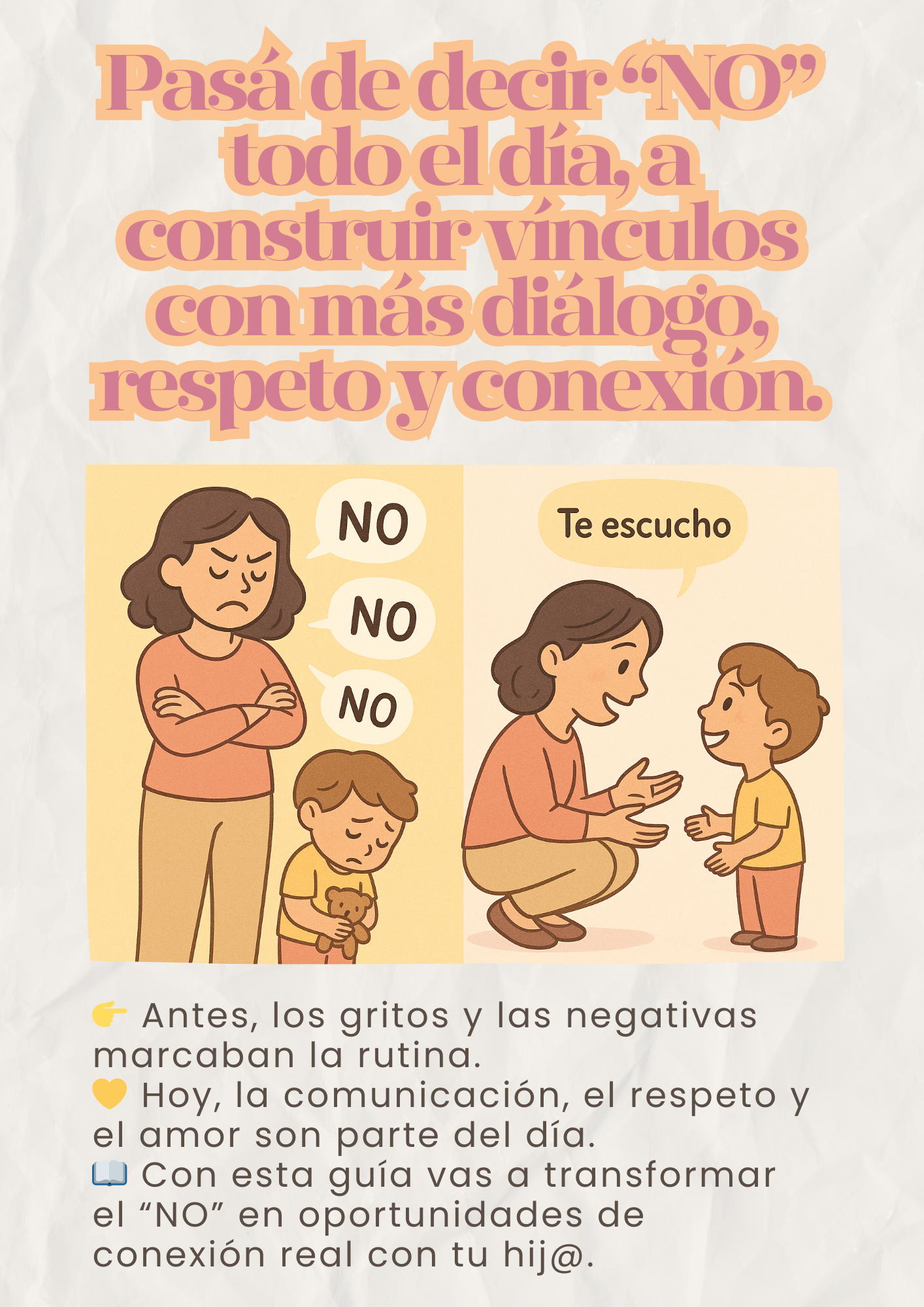 Sí, porque con solo cambiar algunas frases y enfoques, tu hij@ empieza a escucharte distinto y vos a sentir más calma y conexión.
