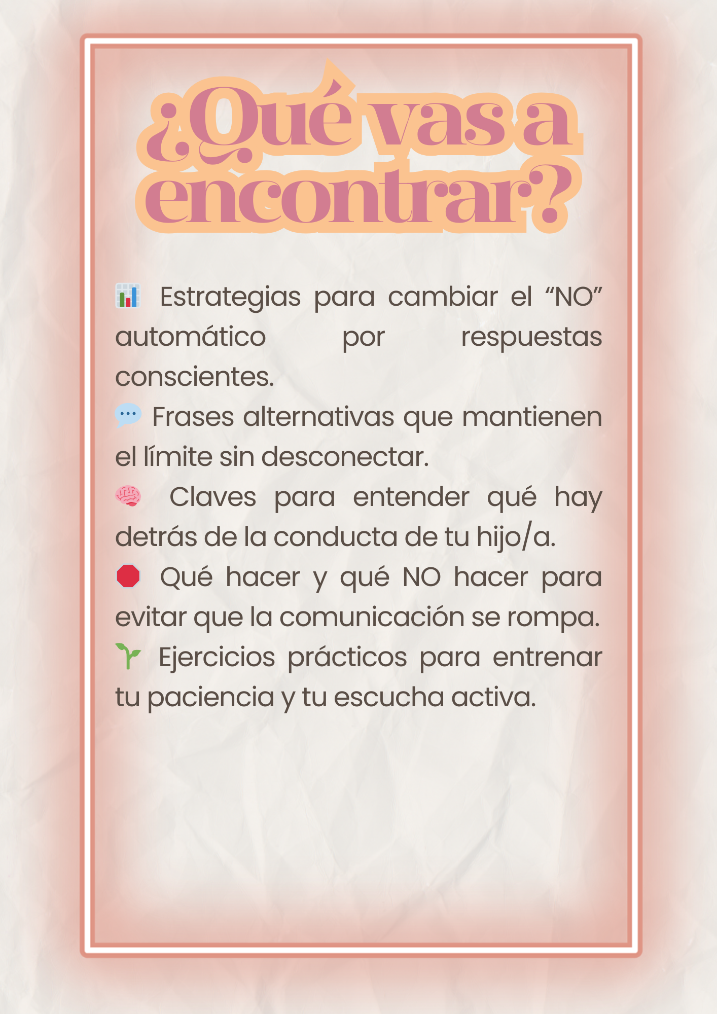 Sí 💛. Vas a recibir recursos extra como frases alternativas, ejercicios de comunicación y técnicas para poner límites sin gritos.