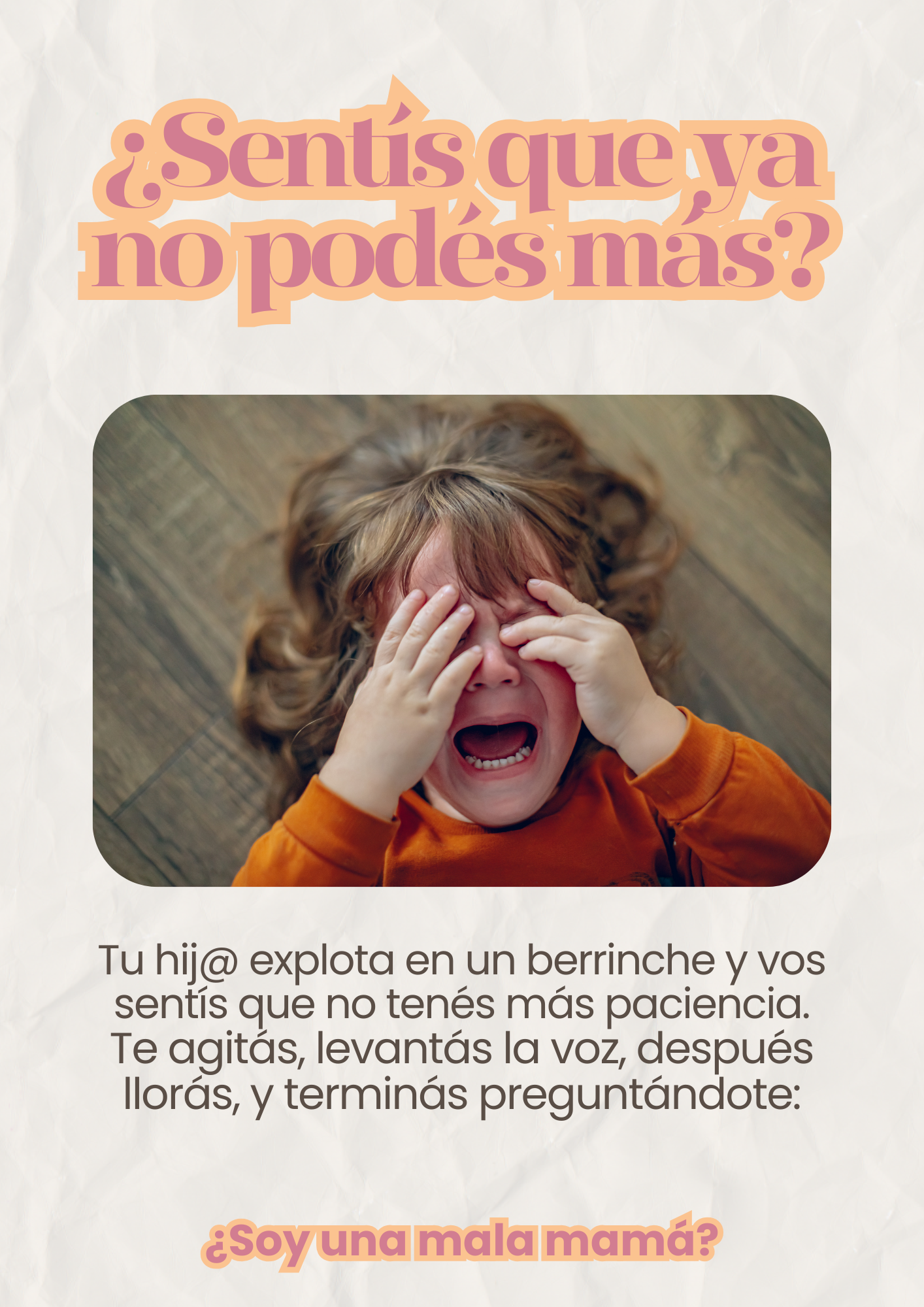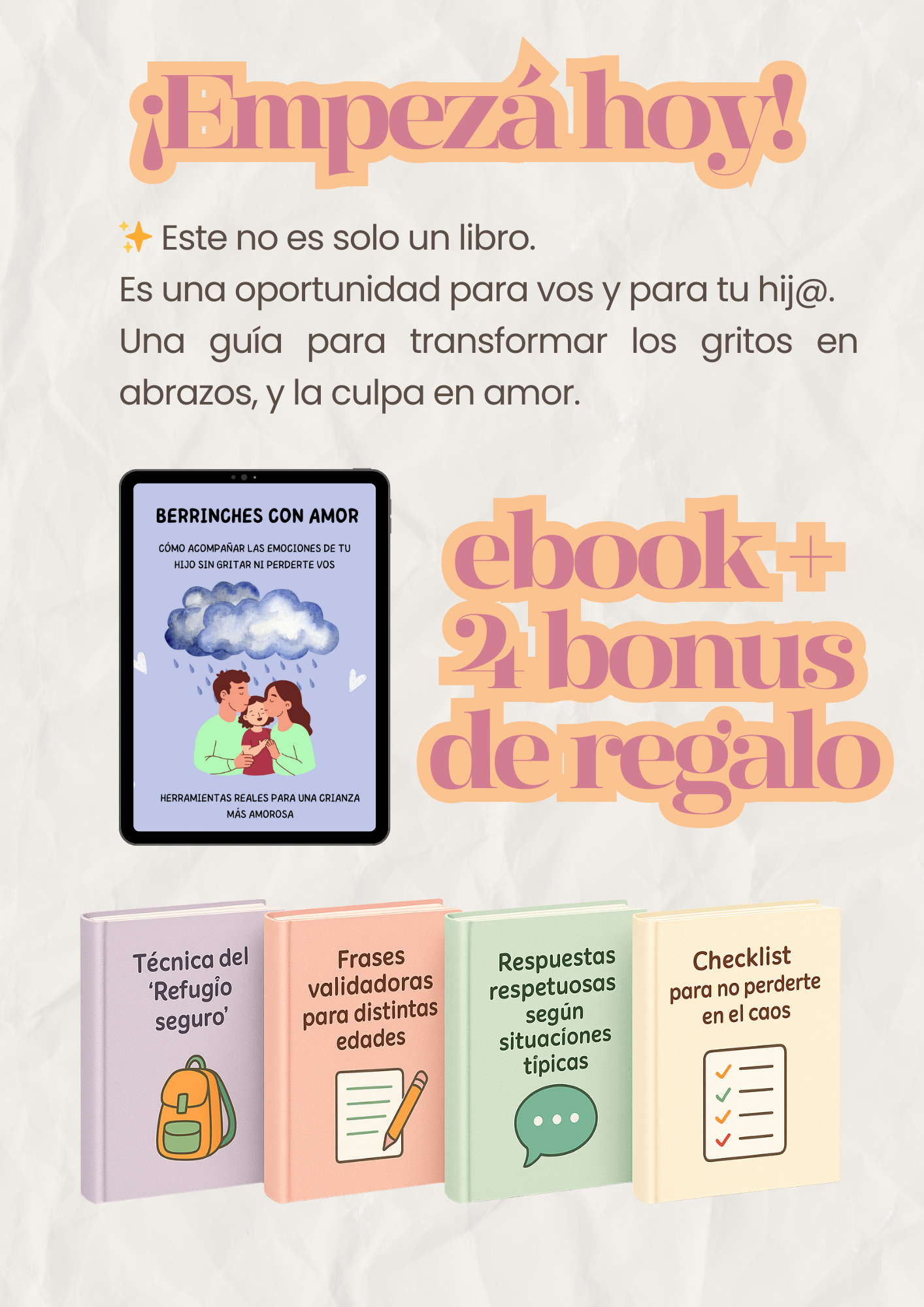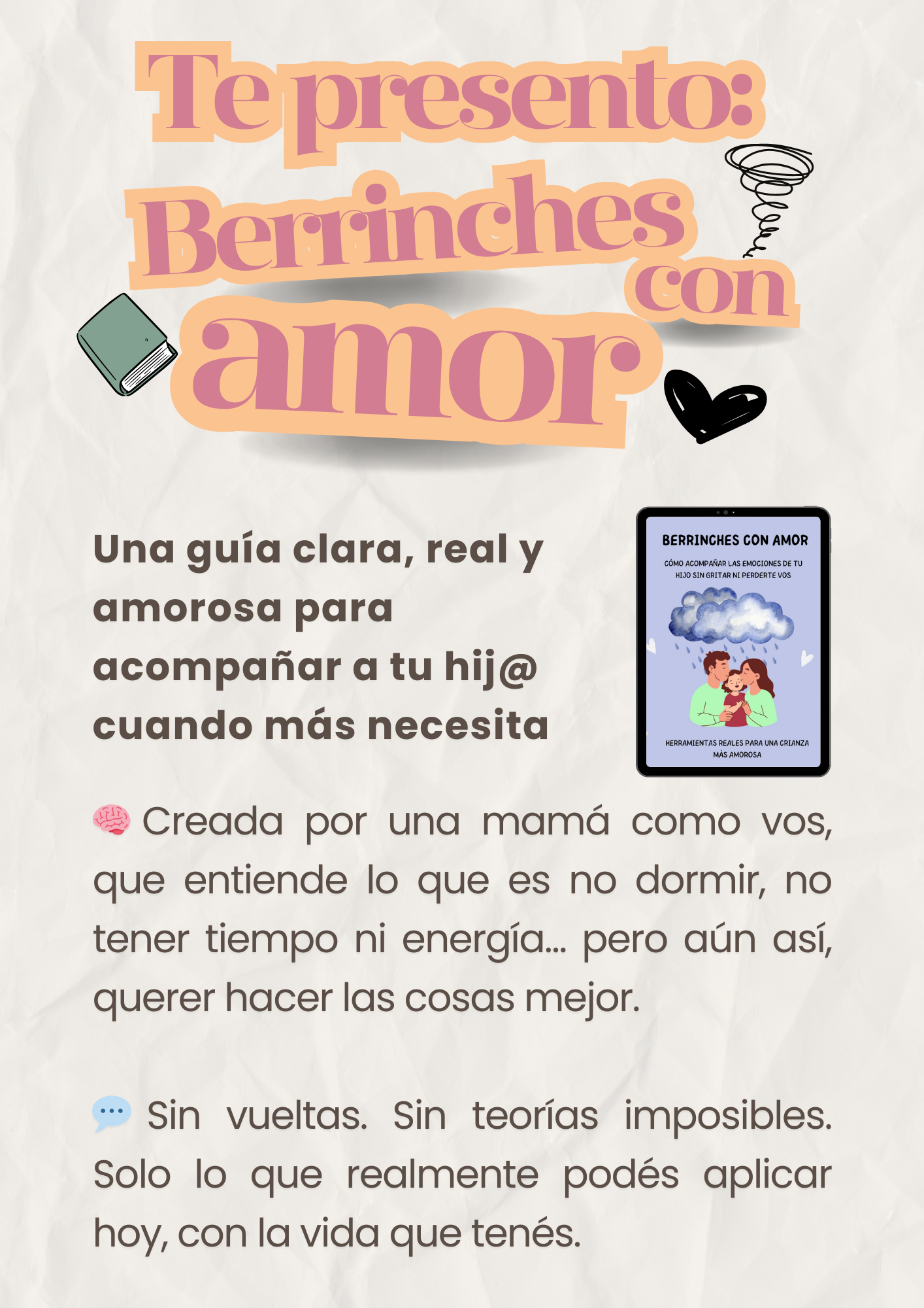 Vas a encontrar herramientas claras y prácticas para acompañar los berrinches sin gritos, amenazas ni culpas.