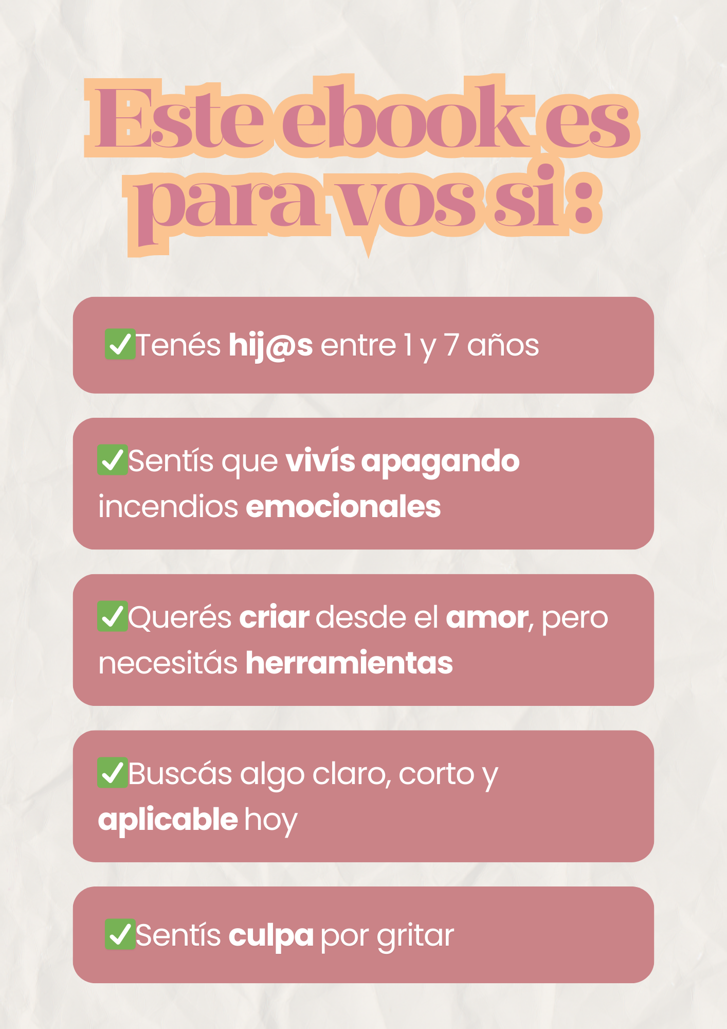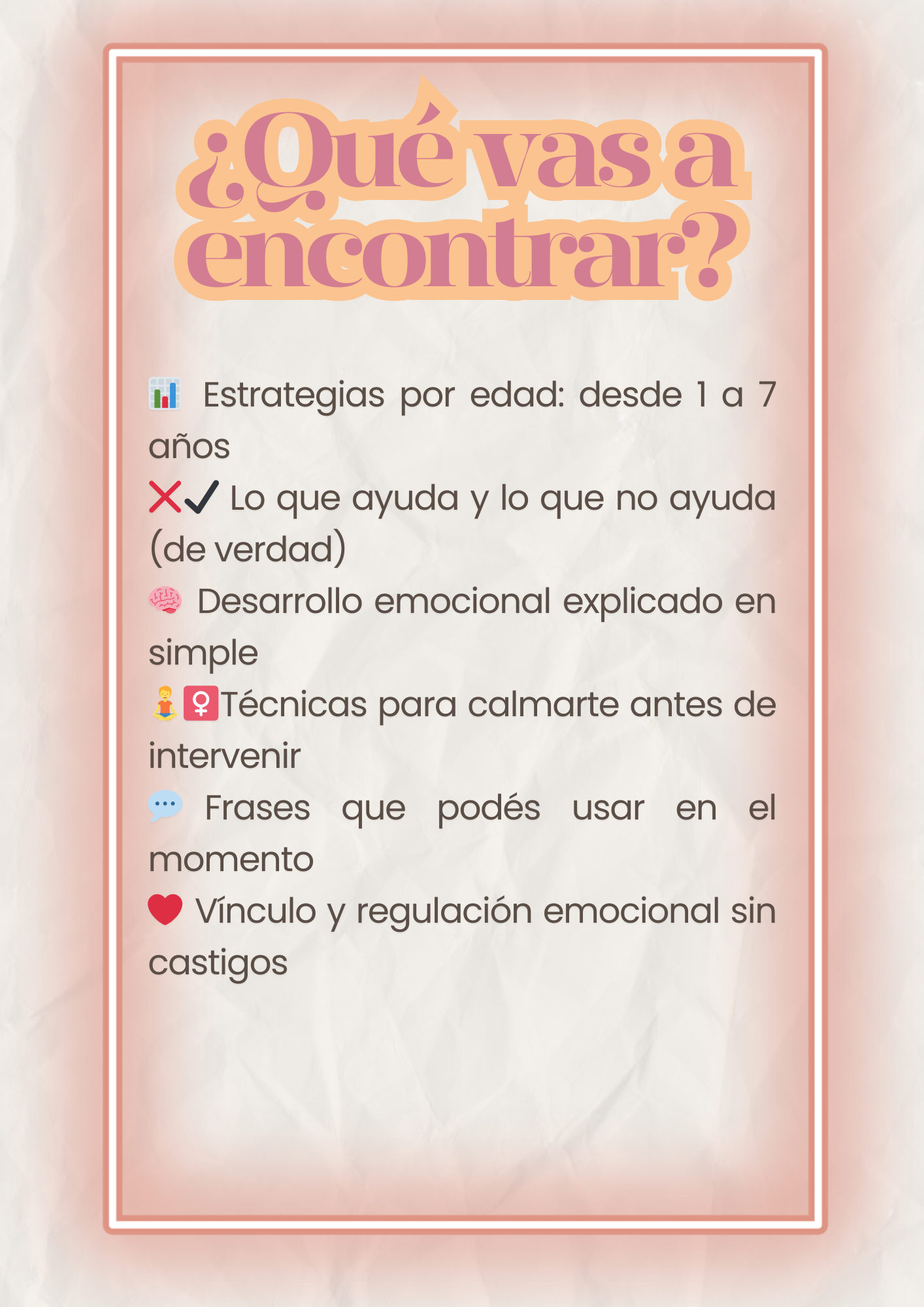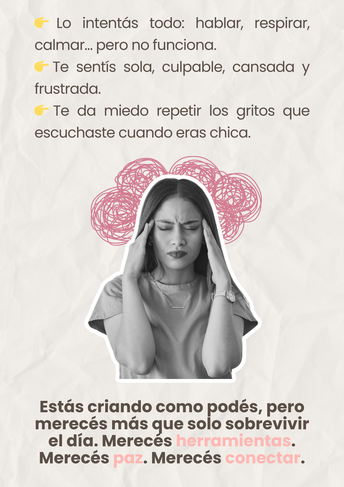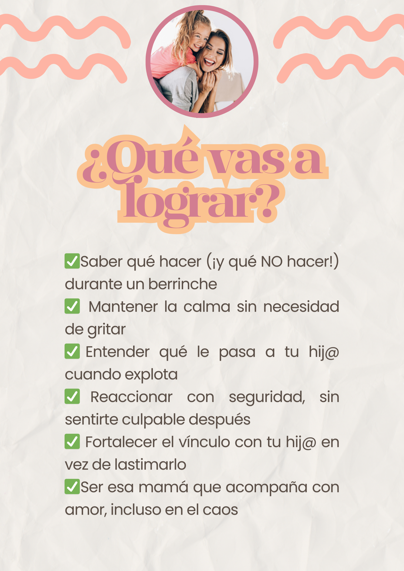 Vas a encontrar herramientas claras y prácticas para acompañar los berrinches sin gritos, amenazas ni culpas.