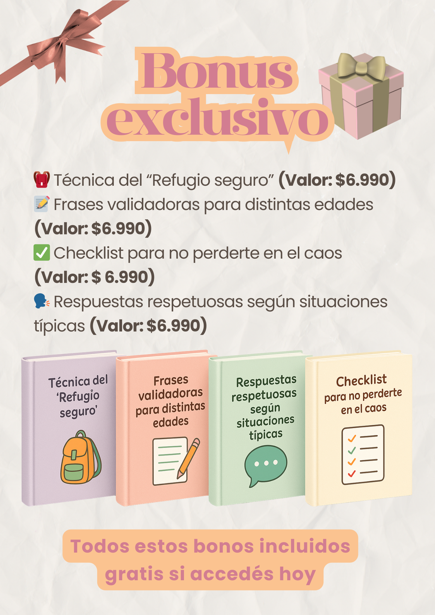 Incluyen la técnica del “Refugio seguro”, frases validadoras, respuestas respetuosas y un checklist práctico para usar en el día a día.